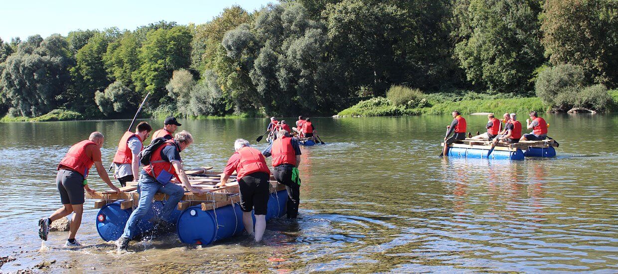 Beim Floßbau werden Ideen Wirklichkeit: Aus einem vorgegebenen Bausatz entsteht unter Anleitung ein schwimmfähiges Floß, das anschließend gemeinsam zu Wasser gelassen wird. Ein Erlebnis, das Teamgeist, Kommunikation und Kreativität vereint – perfekt als Teamevent oder Betriebsausflug für Unternehmen. Je nach Region findet die Floßfahrt auf einem See oder Fluss statt, unter anderem bei Freiburg, Karlsruhe, Weinheim (Heidelberg), Frankfurt (Bonames), in der Region Heilbronn oder Stuttgart. Teamarbeit, Natur und Spaß im besten Gleichgewicht.
